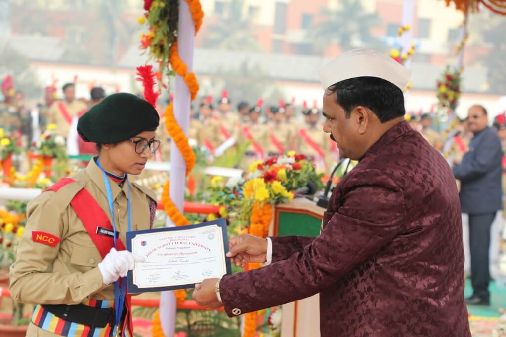 It’s my great honour & privilege to welcome you to Bihar Agricultural University, Sabour the historical place in the map of undivided India wherein one of the agricultural college was established by the British in the year 1908. The university started it journey in this historical place 2010. The number of seat in NCChas fifty two (52) under which seventeen (17) for senior wings (SW) and thirty five (35) for senior division (SD) afterjoining NCC, cadets fell to changed his/her life and life become more disciplined and punctual, personality has been changed, by training they become to know what is unity is by unity we overcome disabilities.